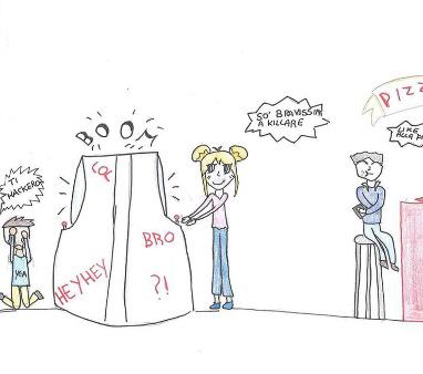 Molte di più le inventiamo per sentirci amici e soprattutto più fresh. Ciccia per dire niente, sei storto per dire che hai sbaglia-to, la prof. è raschia coi voti per dire che non dà più di sei. E siccome siamo un po’ scarichi di parole ci piace abbreviare tutto: asp, cmq, grz, prg, vb, pk (aspetta, comunque, grazie, prego, va bene, perché). Proprio un bel linguaggio il nostro, non ti pare? Ne abbiamo parlato anche a scuola, durante le lezioni di Riflessioni sulla Lingua. Il compito per noi era quello di raccogliere tutte le parole del gergo che usavamo tra amici e di tradurle per realizzare un piccolo Dizionario. Quest’anno, poi, le abbiamo analizzate in classe per capire meglio come funziona il nostro linguaggio e ora eccoci qui a raccontarlo anche a te. Che cosa abbiamo capito? Beh, innanzitutto abbiamo visto che in un anno il nostro gergo era già cambiato e molte parole che spopolavano fino a ieri ora ci sembrano out. D’altronde la caratteristica principale del gergo è proprio la sua velocità. Un’altra cosa che ci è saltata subito agli occhi è l’Inglesizazione della nostra Lingua e il rischio di conoscere meglio l’Inglese dell’Italiano.