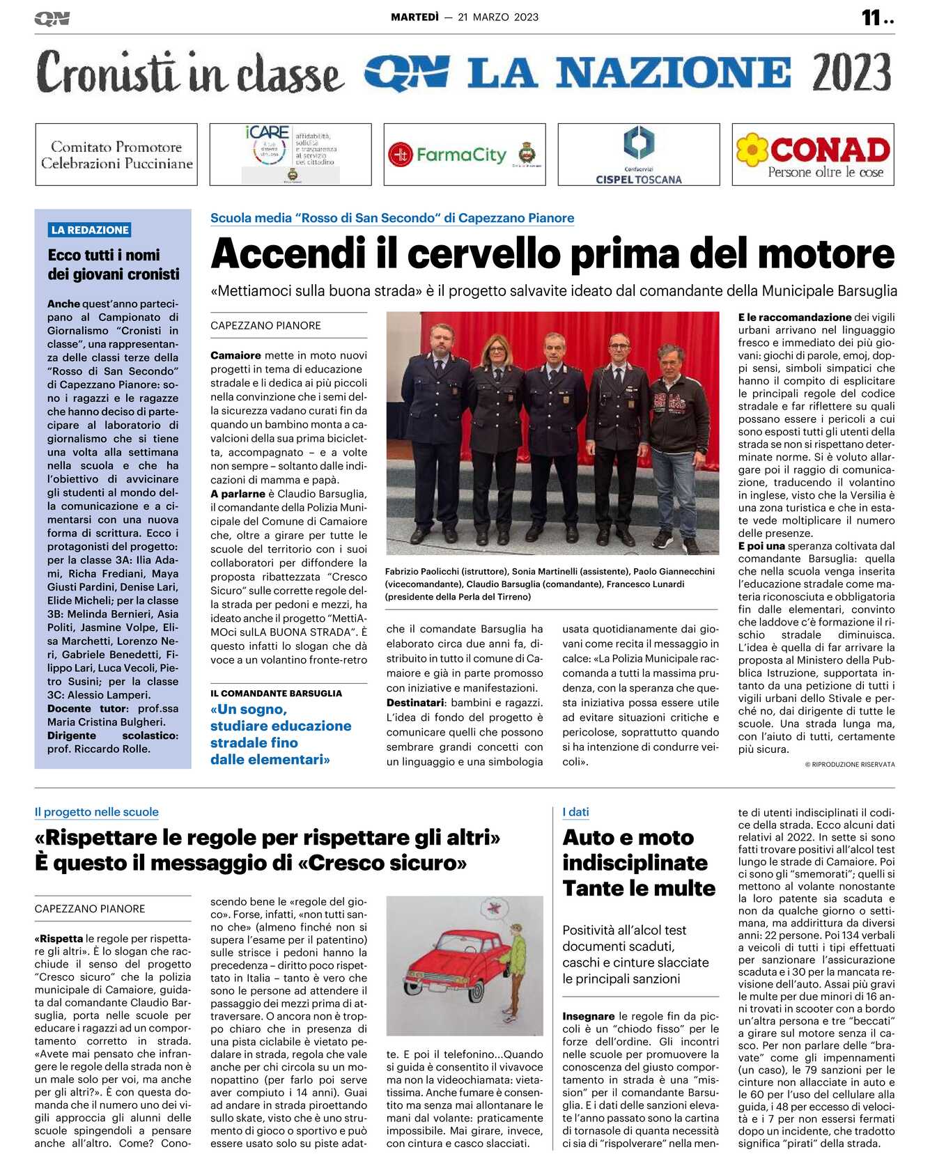 «Rispetta le regole per rispettare gli altri». È lo slogan che racchiude il senso del progetto “Cresco sicuro” che la polizia municipale di Camaiore, guidata dal comandante Claudio Barsuglia, porta nelle scuole per educare i ragazzi ad un comportamento corretto in strada. «Avete mai pensato che infrangere le regole della strada non è un male solo per voi, ma anche per gli altri?». È con questa domanda che il numero uno dei vigili approccia gli alunni delle scuole spingendoli a pensare anche all’altro. Come? Cono-scendo bene le «regole del gioco». Forse, infatti, «non tutti sanno che» (almeno finché non si supera l’esame per il patentino) sulle strisce i pedoni hanno la precedenza – diritto poco rispettato in Italia – tanto è vero che sono le persone ad attendere il passaggio dei mezzi prima di attraversare. O ancora non è troppo chiaro che in presenza di una pista ciclabile è vietato pedalare in strada, regola che vale anche per chi circola su un monopattino (per farlo poi serve aver compiuto i 14 anni). Guai ad andare in strada piroettando sullo skate, visto che è uno strumento di gioco o sportivo e può essere usato solo su piste adatte. E poi il telefonino…Quando si guida è consentito il vivavoce ma non la videochiamata: vietatissima. Anche fumare è consentito ma senza mai allontanare le mani dal volante: praticamente impossibile. Mai girare, invece, con cintura e casco slacciati.