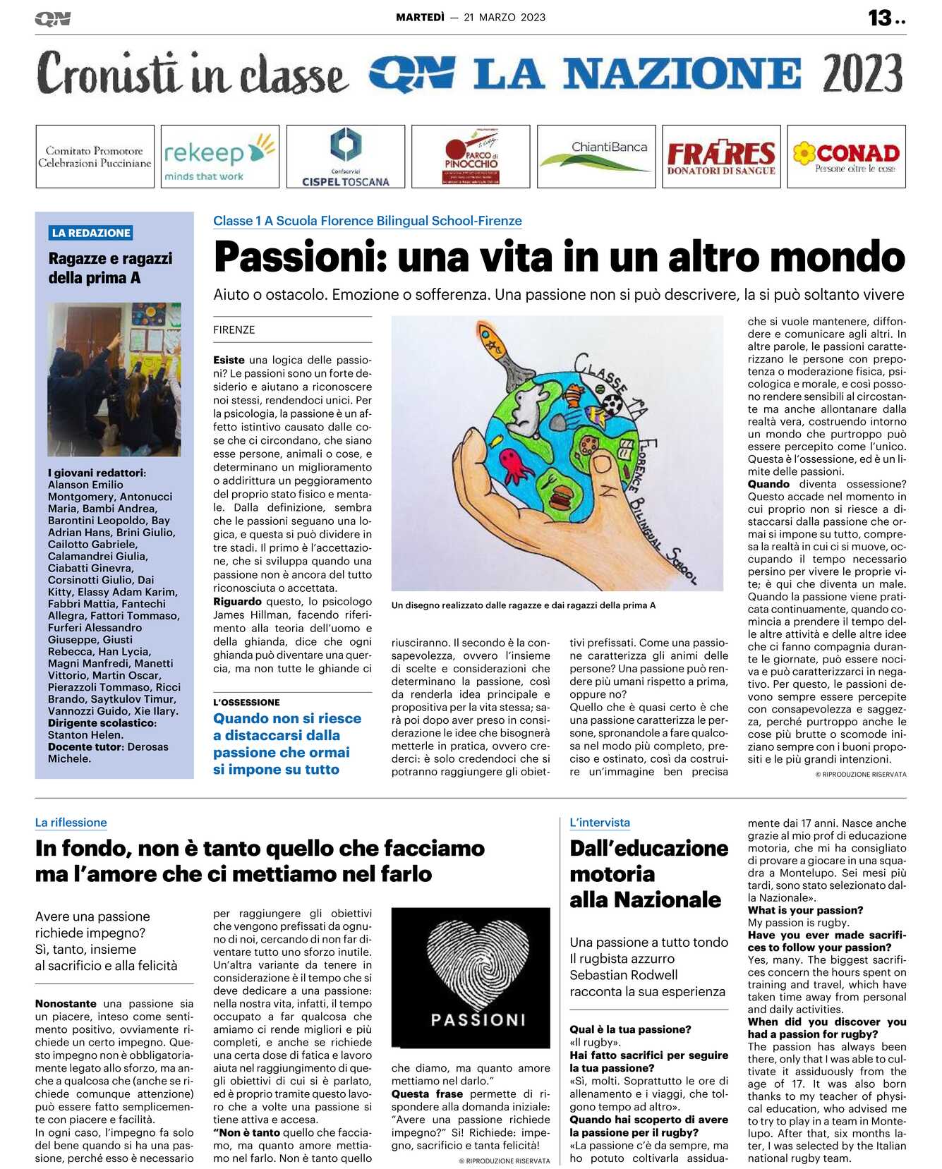 I giovani redattori: Alanson Emilio Montgomery, Antonucci Maria, Bambi Andrea, Barontini Leopoldo, Bay Adrian Hans, Brini Giulio, Cailotto Gabriele, Calamandrei Giulia, Ciabatti Ginevra, Corsinotti Giulio, Dai Kitty, Elassy Adam Karim, Fabbri Mattia, Fantechi Allegra, Fattori Tommaso, Furferi Alessandro Giuseppe, Giusti Rebecca, Han Lycia, Magni Manfredi, Manetti Vittorio, Martin Oscar, Pierazzoli Tommaso, Ricci Brando, Saytkulov Timur, Vannozzi Guido, Xie Ilary.