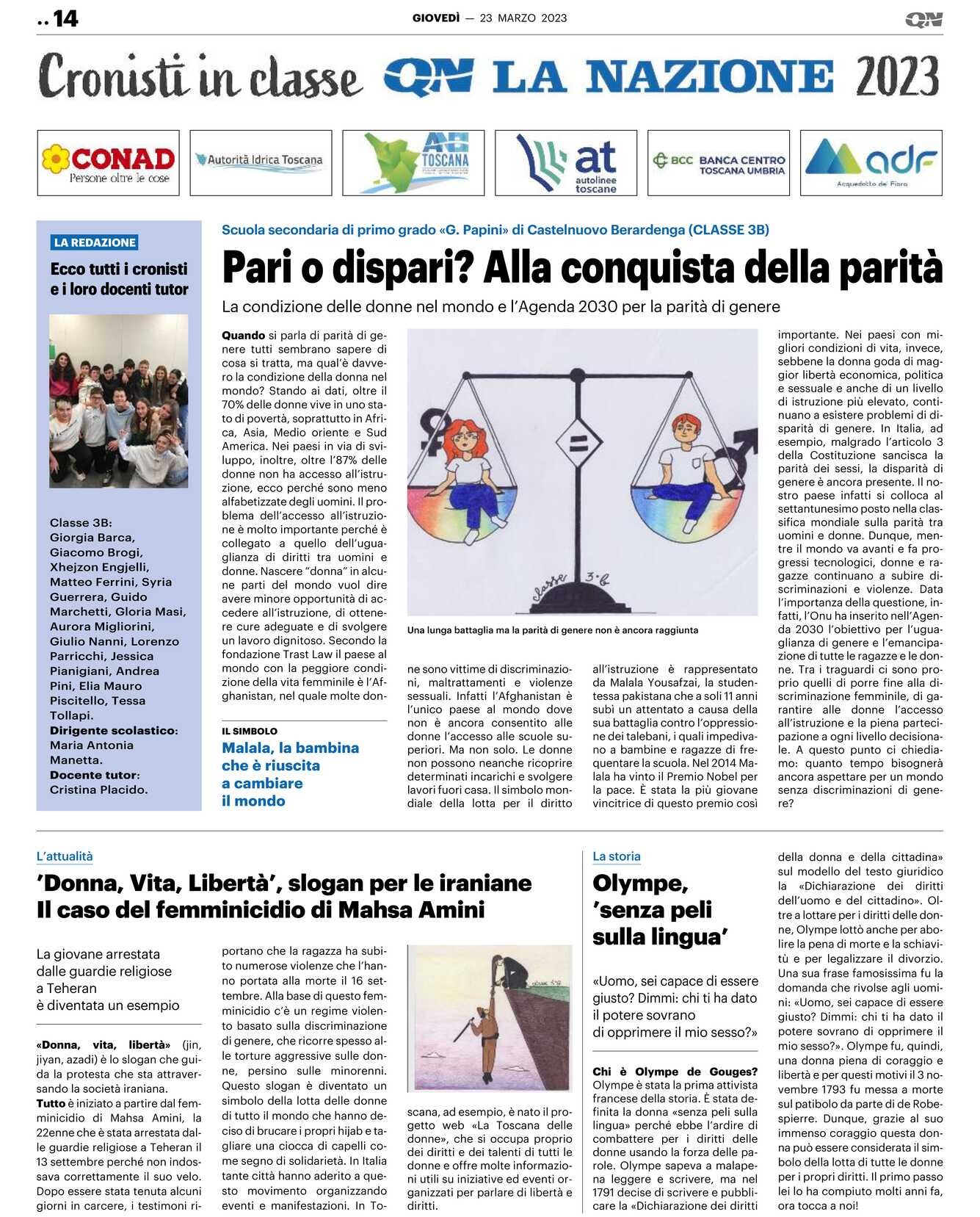 Classe 3B: Giorgia Barca, Giacomo Brogi, Xhejzon Engjelli, Matteo Ferrini, Syria Guerrera, Guido Marchetti, Gloria Masi, Aurora Migliorini, Giulio Nanni, Lorenzo Parricchi, Jessica Pianigiani, Andrea Pini, Elia Mauro Piscitello, Tessa Tollapi.