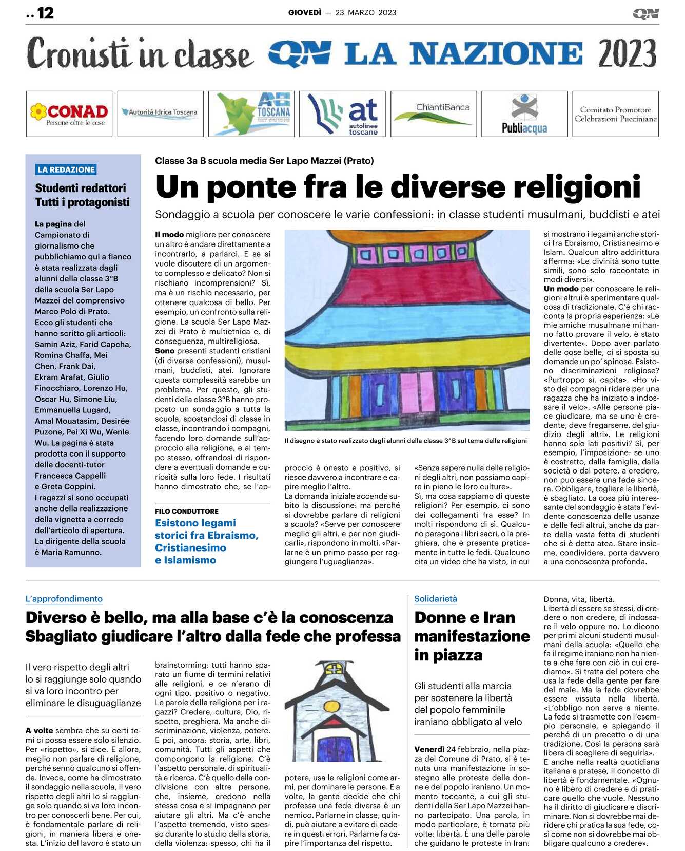 Ecco gli studenti che hanno scritto gli articoli: Samin Aziz, Farid Capcha, Romina Chaffa, Mei Chen, Frank Dai, Ekram Arafat, Giulio Finocchiaro, Lorenzo Hu, Oscar Hu, Simone Liu, Emmanuella Lugard, Amal Mouatasim, Desirée Puzone, Pei Xi Wu, Wenle Wu. La pagina è stata prodotta con il supporto delle docenti-tutor Francesca Cappelli e Greta Coppini.