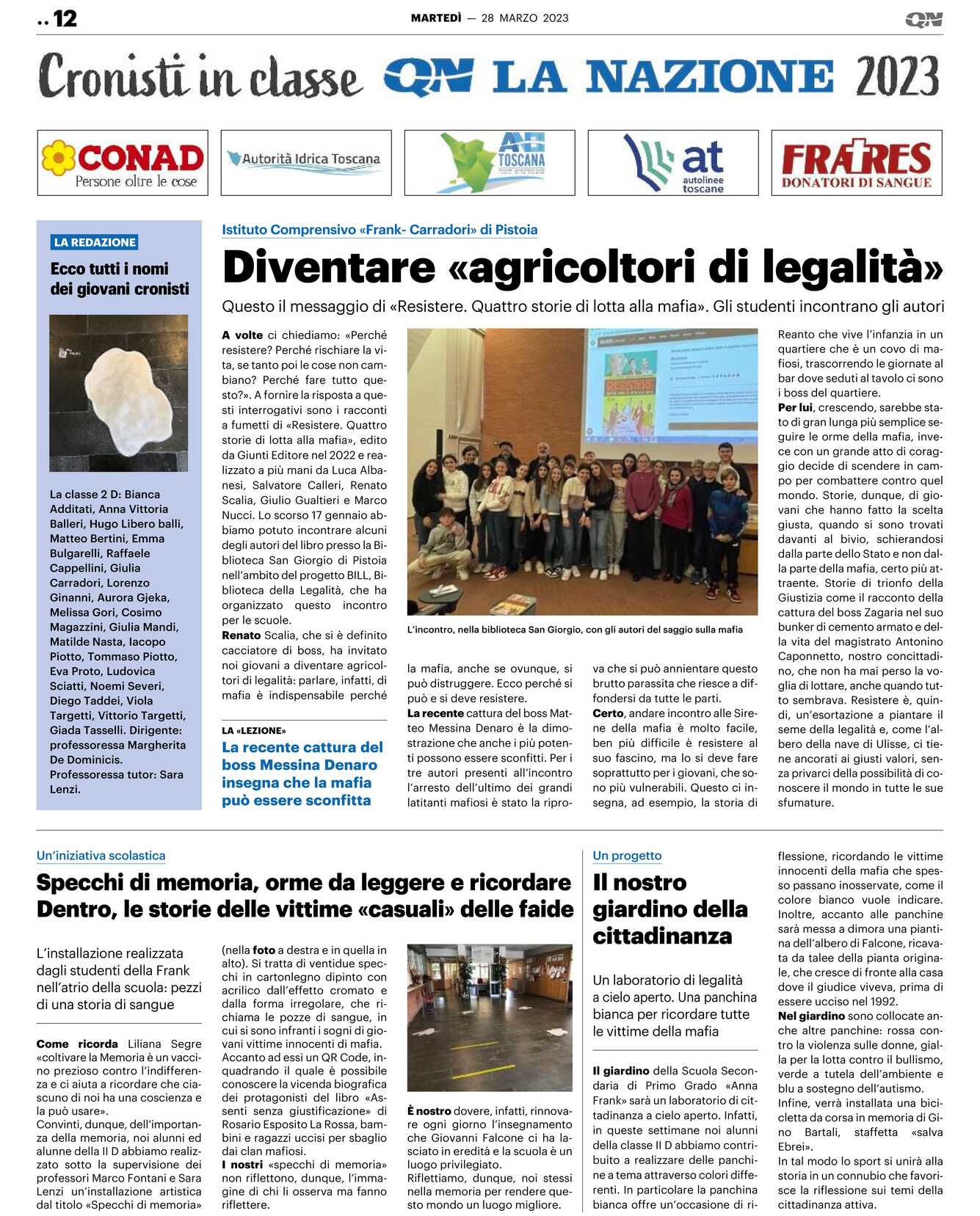 La classe 2 D: Bianca Additati, Anna Vittoria Balleri, Hugo Libero balli, Matteo Bertini, Emma Bulgarelli, Raffaele Cappellini, Giulia Carradori, Lorenzo Ginanni, Aurora Gjeka, Melissa Gori, Cosimo Magazzini, Giulia Mandi, Matilde Nasta, Iacopo Piotto, Tommaso Piotto, Eva Proto, Ludovica Sciatti, Noemi Severi, Diego Taddei, Viola Targetti, Vittorio Targetti, Giada Tasselli. Dirigente: professoressa Margherita De Dominicis.