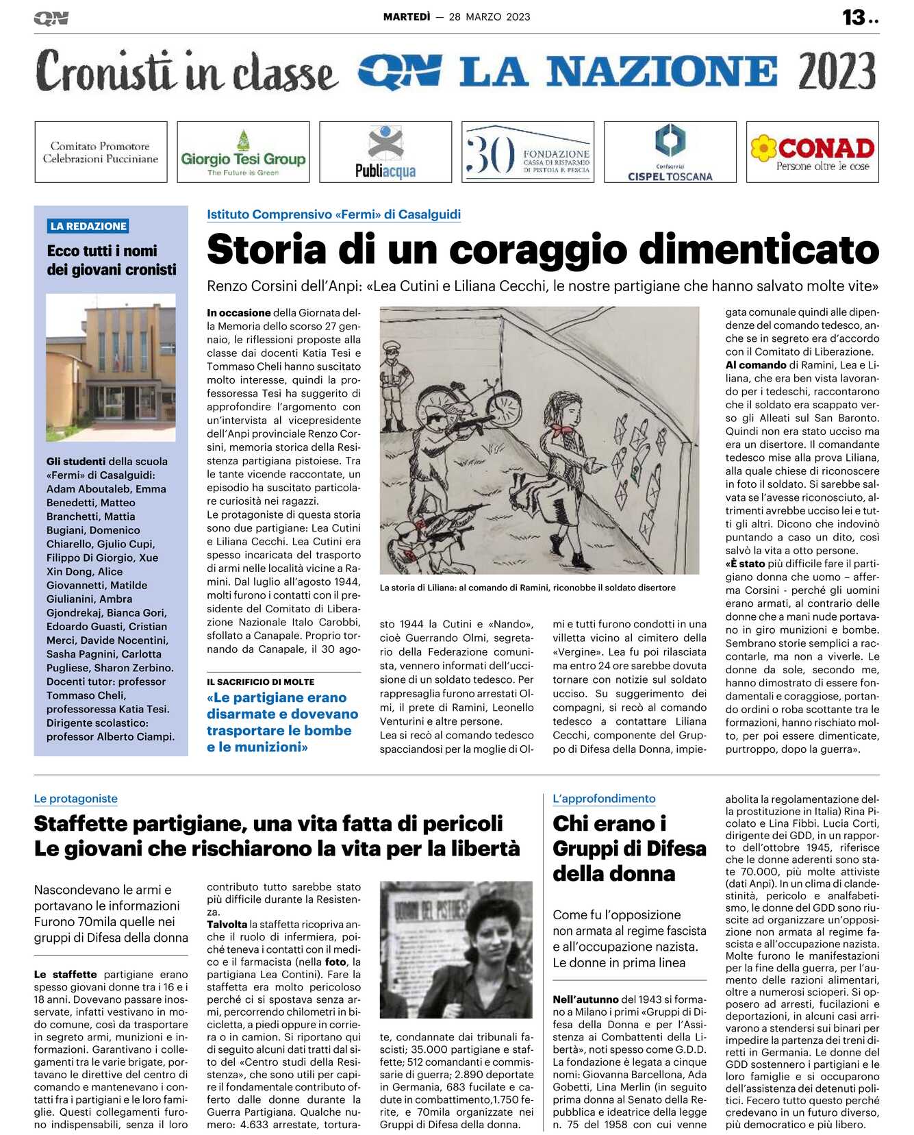 Gli studenti della scuola «Fermi» di Casalguidi: Adam Aboutaleb, Emma Benedetti, Matteo Branchetti, Mattia Bugiani, Domenico Chiarello, Gjulio Cupi, Filippo Di Giorgio, Xue Xin Dong, Alice Giovannetti, Matilde Giulianini, Ambra Gjondrekaj, Bianca Gori, Edoardo Guasti, Cristian Merci, Davide Nocentini, Sasha Pagnini, Carlotta Pugliese, Sharon Zerbino.