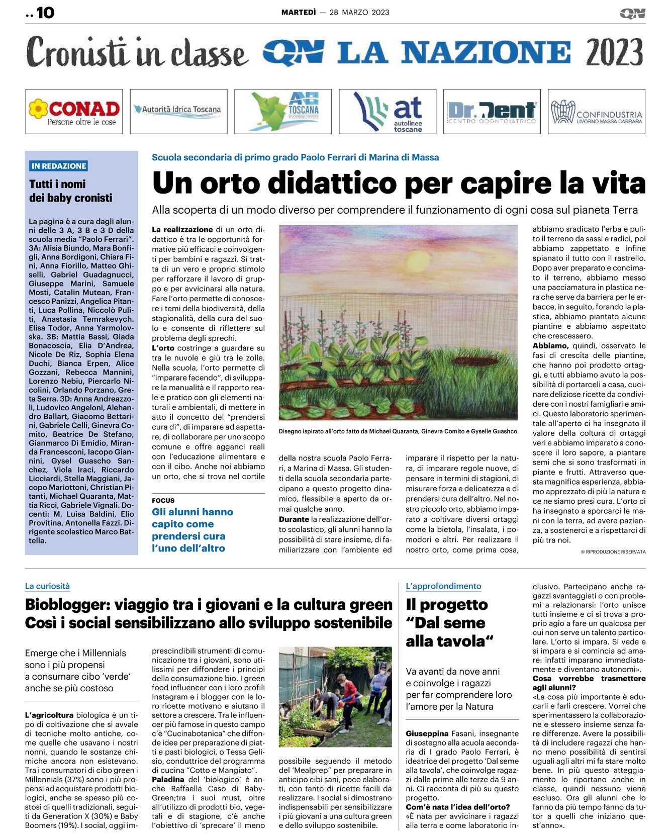 Nella scuola, l’orto permette di “imparare facendo”, di sviluppare la manualità e il rapporto reale e pratico con gli elementi naturali e ambientali, di mettere in atto il concetto del “prendersi cura di”, di imparare ad aspettare, di collaborare per uno scopo comune e offre agganci reali con l’educazione alimentare e con il cibo. Anche noi abbiamo un orto, che si trova nel cortile della nostra scuola Paolo Ferrari, a Marina di Massa. Gli studenti della scuola secondaria partecipano a questo progetto dinamico, flessibile e aperto da ormai qualche anno.