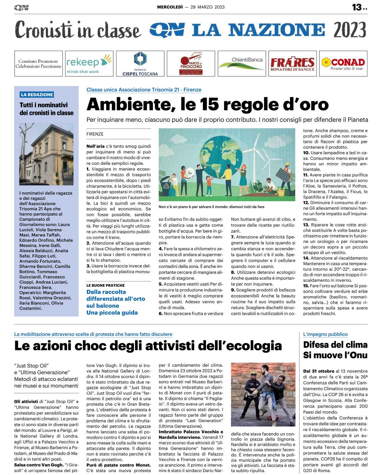 I nominativi delle ragazze e dei ragazzi dell’Associazione Trisomia 21 Aps che hanno partecipato al Campionato di Giornalismo sono: Laura Lucioli, Viola Serena Masi, Marwa Taffah, Edoardo Orofino, Michele Messina, Irene Galli, Alessia Balduzzi, Anaita Safai, Filippo Luti, Armando Fortunato, Dharma Bencini, Camilla Bottino, Tommaso Guicciardi, Francesco Cioppi, Andrea Luciani, Francesca Sera. Operatrici: Margherita Rossi, Valentina Grazzini, Ilaria Bianconi, Olivia Costantini.