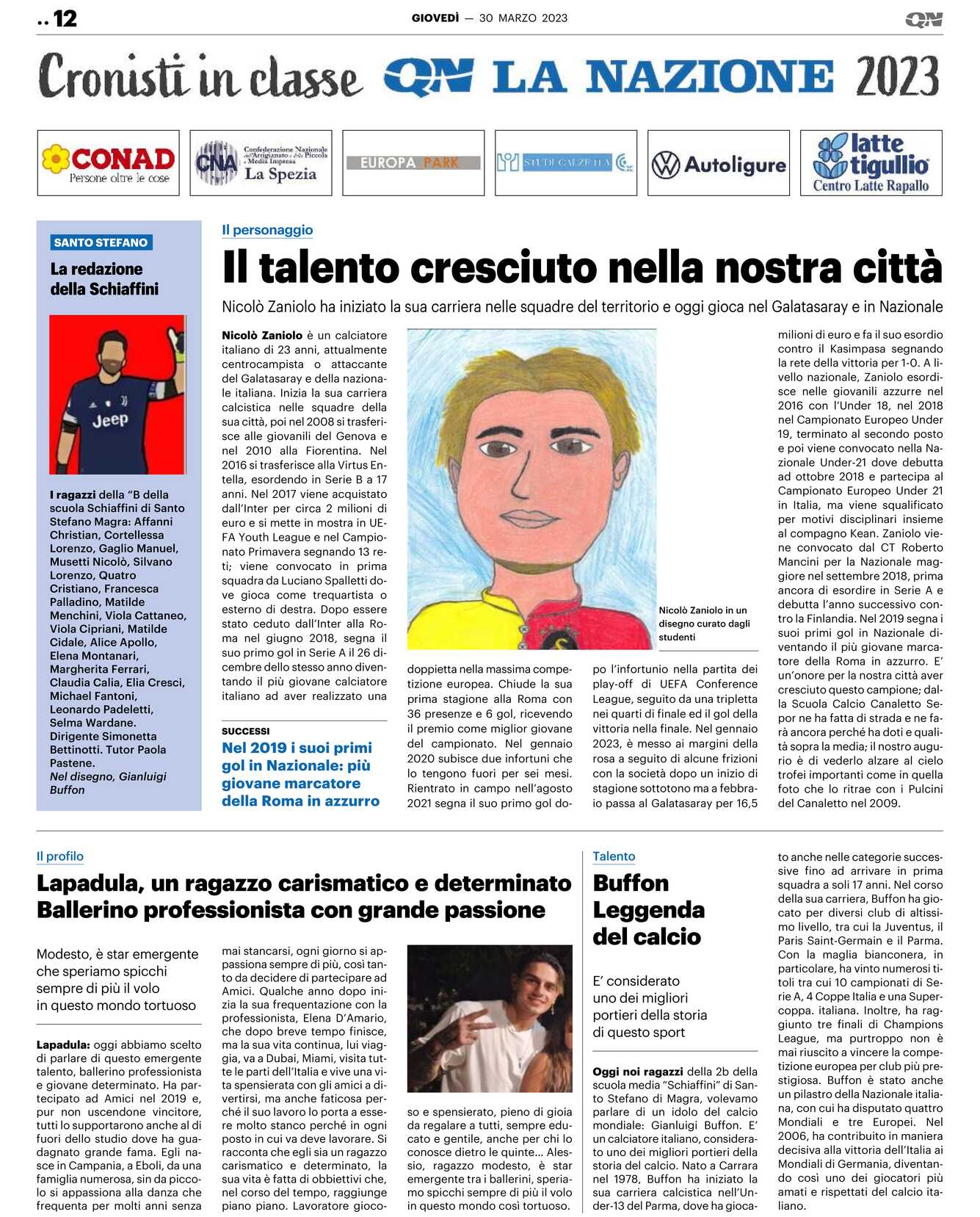 Oggi noi ragazzi della 2b della scuola media “Schiaffini” di Santo Stefano di Magra, volevamo parlare di un idolo del calcio mondiale: Gianluigi Buffon. E’ un calciatore italiano, considerato uno dei migliori portieri della storia del calcio. Nato a Carrara nel 1978, Buffon ha iniziato la sua carriera calcistica nell’Under-13 del Parma, dove ha gioca-to anche nelle categorie successive fino ad arrivare in prima squadra a soli 17 anni. Nel corso della sua carriera, Buffon ha giocato per diversi club di altissimo livello, tra cui la Juventus, il Paris Saint-Germain e il Parma. Con la maglia bianconera, in particolare, ha vinto numerosi titoli tra cui 10 campionati di Serie A, 4 Coppe Italia e una Supercoppa. italiana. Inoltre, ha raggiunto tre finali di Champions League, ma purtroppo non è mai riuscito a vincere la competizione europea per club più prestigiosa. Buffon è stato anche un pilastro della Nazionale italiana, con cui ha disputato quattro Mondiali e tre Europei. Nel 2006, ha contribuito in maniera decisiva alla vittoria dell’Italia ai Mondiali di Germania, diventando così uno dei giocatori più amati e rispettati del calcio italiano.