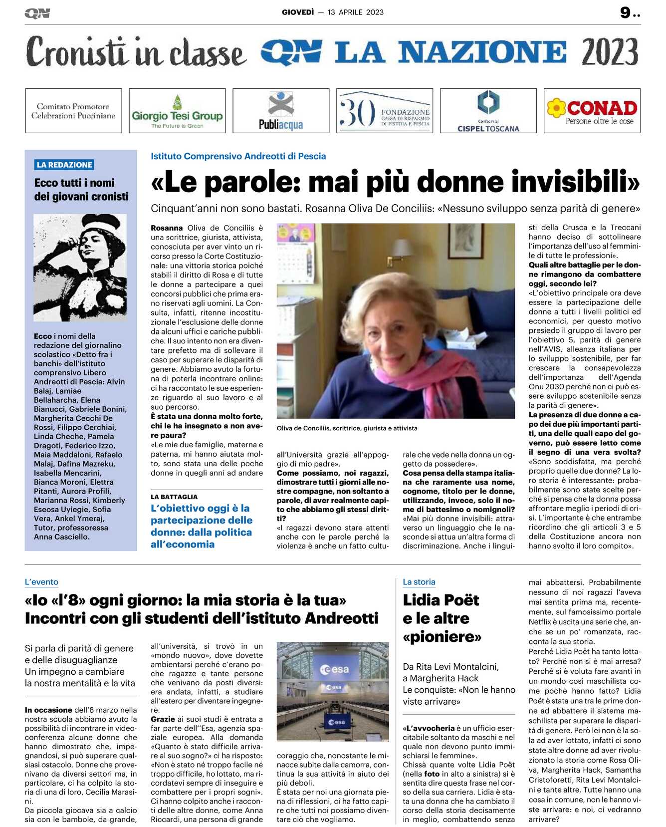 Ecco i nomi della redazione del giornalino scolastico «Detto fra i banchi» dell’istituto comprensivo Libero Andreotti di Pescia: Alvin Balaj, Lamiae Bellaharcha, Elena Bianucci, Gabriele Bonini, Margherita Cecchi De Rossi, Filippo Cerchiai, Linda Cheche, Pamela Dragoti, Federico Izzo, Maia Maddaloni, Rafaelo Malaj, Dafina Mazreku, Isabella Mencarini, Bianca Moroni, Elettra Pitanti, Aurora Profili, Marianna Rossi, Kimberly Eseosa Uyiegie, Sofia Vera, Ankel Ymeraj, Tutor, professoressa Anna Casciello.