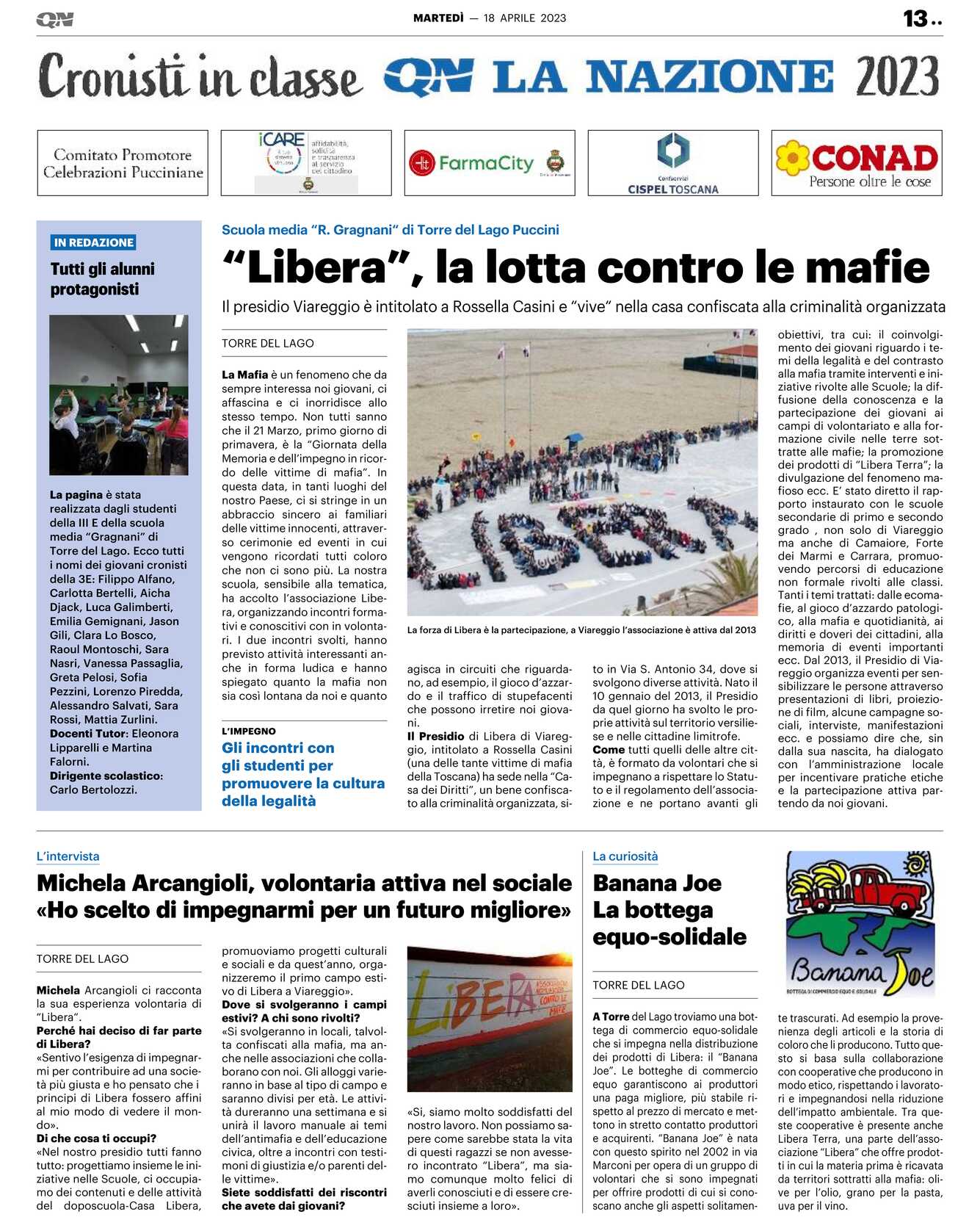 La pagina è stata realizzata dagli studenti della III E della scuola media “Gragnani” di Torre del Lago. Ecco tutti i nomi dei giovani cronisti della 3E: Filippo Alfano, Carlotta Bertelli, Aicha Djack, Luca Galimberti, Emilia Gemignani, Jason Gili, Clara Lo Bosco, Raoul Montoschi, Sara Nasri, Vanessa Passaglia, Greta Pelosi, Sofia Pezzini, Lorenzo Piredda, Alessandro Salvati, Sara Rossi, Mattia Zurlini.