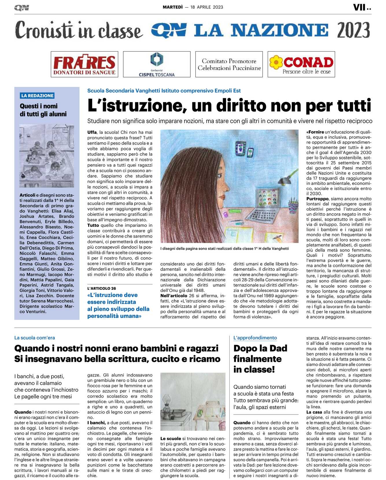 Articoli e disegni sono stati realizzati dalla 1^ H della Secondaria di primo grado Vanghetti: Elisa Aliaj, Joshua Artates, Brando Benvenuti, Eryle Billedo, Alessandro Bisesto, Noemi Cappella, Flora Castillo, Enea Cocchiara, Cecilia Debenedittis, Carmen Dell’Ostia, Diego Di Prima, Niccolò Falaschi, Emma Gaggelli, Matteo Gibiino, Emma Giunti, Anita Gonfiantini, Giulio Grossi, Zeno Marmugi, Iacopo Mordini, Mattia Papalini, Gaia Paperini, Astrid Tangala, Giorgia Toni, Vittorio Valori, Lisa Zecchin. Docente tutor Serena Marrocchesi.