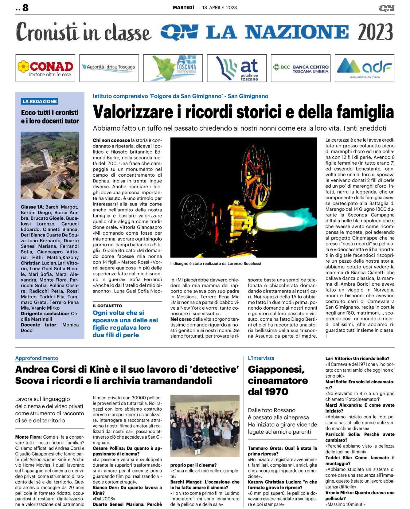 Classe 1A: Barchi Margot, Bertini Diego, Borici Ambra, Brucato Gioele, Bucalossi Lorenzo, Carucci Edoardo, Cianetti Bianca, Deri Bianca Duarte De Souza Joao Bernardo, Duarte Senesi Mariana, Ferrandi Sofia, Giancaspro Vittoria, Hithi Mattia, Kazony Christian Lucien, Lari Vittorio, Luna Guel Sofia Nicole, Mari Sofia, Marzi Alexandra, Monte Flora, Parricchi Sofia, Pollina Cesare, Radicchi Petra, Rossi Matteo, Taddei Elia, Tammaro Greta, Terrero Pena Mia, Vranic Mirko Dirigente scolastico: Cecilia Martinelli Docente tutor: MonicaDocci