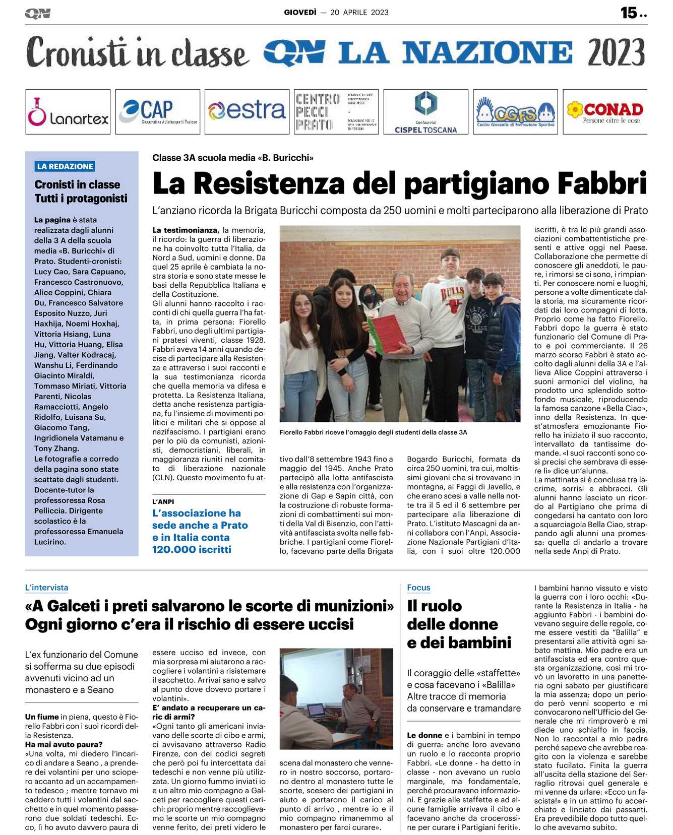 La pagina è stata realizzata dagli alunni della 3 A della scuola media «B. Buricchi» di Prato. Studenti-cronisti: Lucy Cao, Sara Capuano, Francesco Castronuovo, Alice Coppini, Chiara Du, Francesco Salvatore Esposito Nuzzo, Juri Haxhija, Noemi Hoxhaj, Vittoria Hsiang, Luna Hu, Vittoria Huang, Elisa Jiang, Valter Kodracaj, Wanshu Li, Ferdinando Giacinto Miraldi, Tommaso Miriati, Vittoria Parenti, Nicolas Ramacciotti, Angelo Ridolfo, Luisana Su, Giacomo Tang, Ingridionela Vatamanu e Tony Zhang.