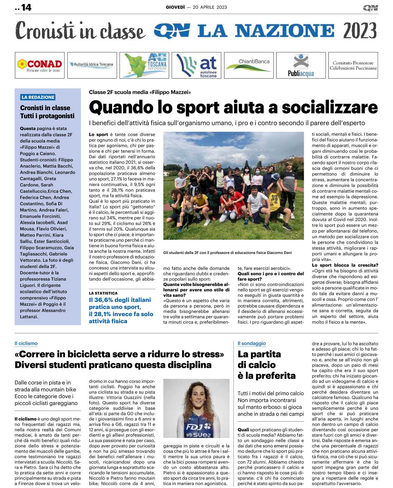 Studenti-cronisti: Filippo Anaclerio, Mattia Bacchi, Andrea Bianchi, Leonardo Cantagalli, Greta Cardone, Sarah Castelluccio, Erica Chen, Federica Chen, Andrea Costantino, Sofia Di Martino, Andrea Faleri, Emanuele Forciniti, Alessia Iacobelli, Asad Mousa, Flavio Olivieri, Matteo Parrini, Kiara Salliu, Ester Santiccioli, Filippo Scaramuzzo, Gaia Tagliasacchi, Gabriele Vettorato. La foto è degli studenti della 2F.