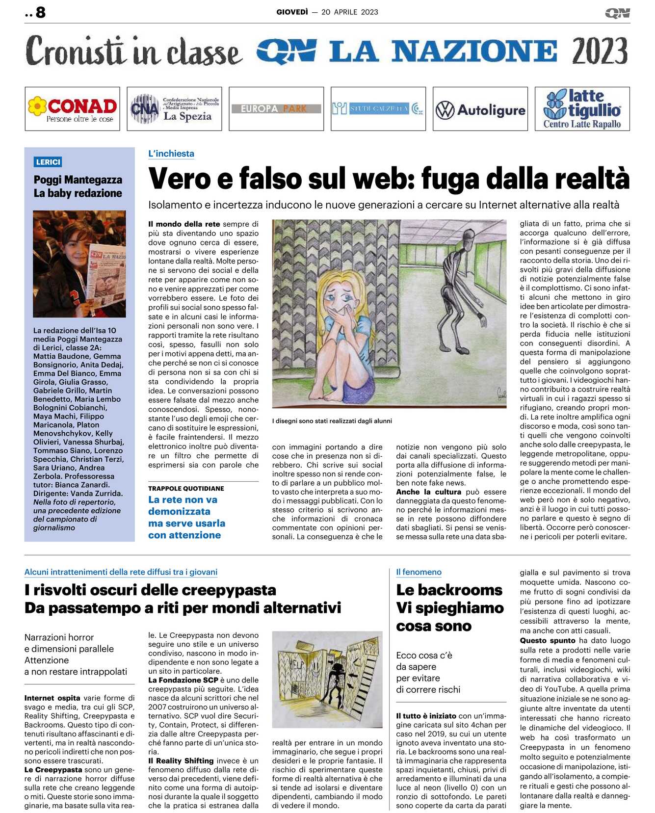 La redazione dell’Isa 10 media Poggi Mantegazza di Lerici, classe 2A: Mattia Baudone, Gemma Bonsignorio, Anita Dedaj, Emma Del Bianco, Emma Girola, Giulia Grasso, Gabriele Grillo, Martin Benedetto, Maria Lembo Bolognini Cobianchi, Maya Machì, Filippo Maricanola, Platon Menovshchykov, Kelly Olivieri, Vanessa Shurbaj, Tommaso Siano, Lorenzo Specchia, Christian Terzi, Sara Uriano, Andrea Zerbola. Professoressa tutor: Bianca Zanardi.