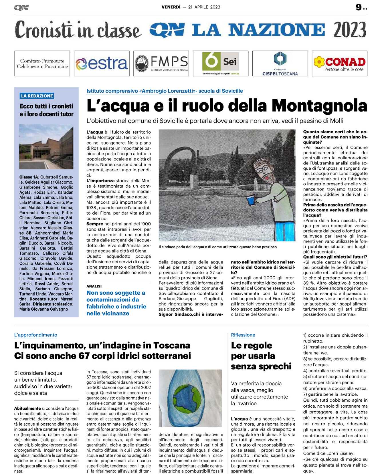 Classe 1A: Cubattoli Samuele, Geldres Aguilar Giacomo, Giambrone Simone, Goglio Agata, Hodza Erin, Karadan Alema, Lala Emma, Lala Eno, Lala Matteo, Lala Oresti, Meloni Matilde, Petrini Emma, Parronchi Bernardo, Pifferi Chiara, Sasson Christian, Shili Nermine, Stigliano Christian, Vaccaro Alessio. Classe 3B: Agheorghisei Maria Elisa, Arrighetti Gabriele, Baglini Duccio, Bartali Niccolò, BartaliniCarlotta,BettiniTommaso, Callozzo Cifalà Giacomo, Ciravolo Davide, Corallo Gabriele, Covili Daniele, Da Frassini Lorenzo, Fortina Virginia, Merka Giulia, Minucci Irene, Pezzotti Letizia, Rossi Adele, Serusi Stella, Suriano Giuseppe, Turbanti Linda, Vaccaro Martina. Docente tutor: Massai Sarita. Dirigente scolastico: Maria Giovanna Galvagno