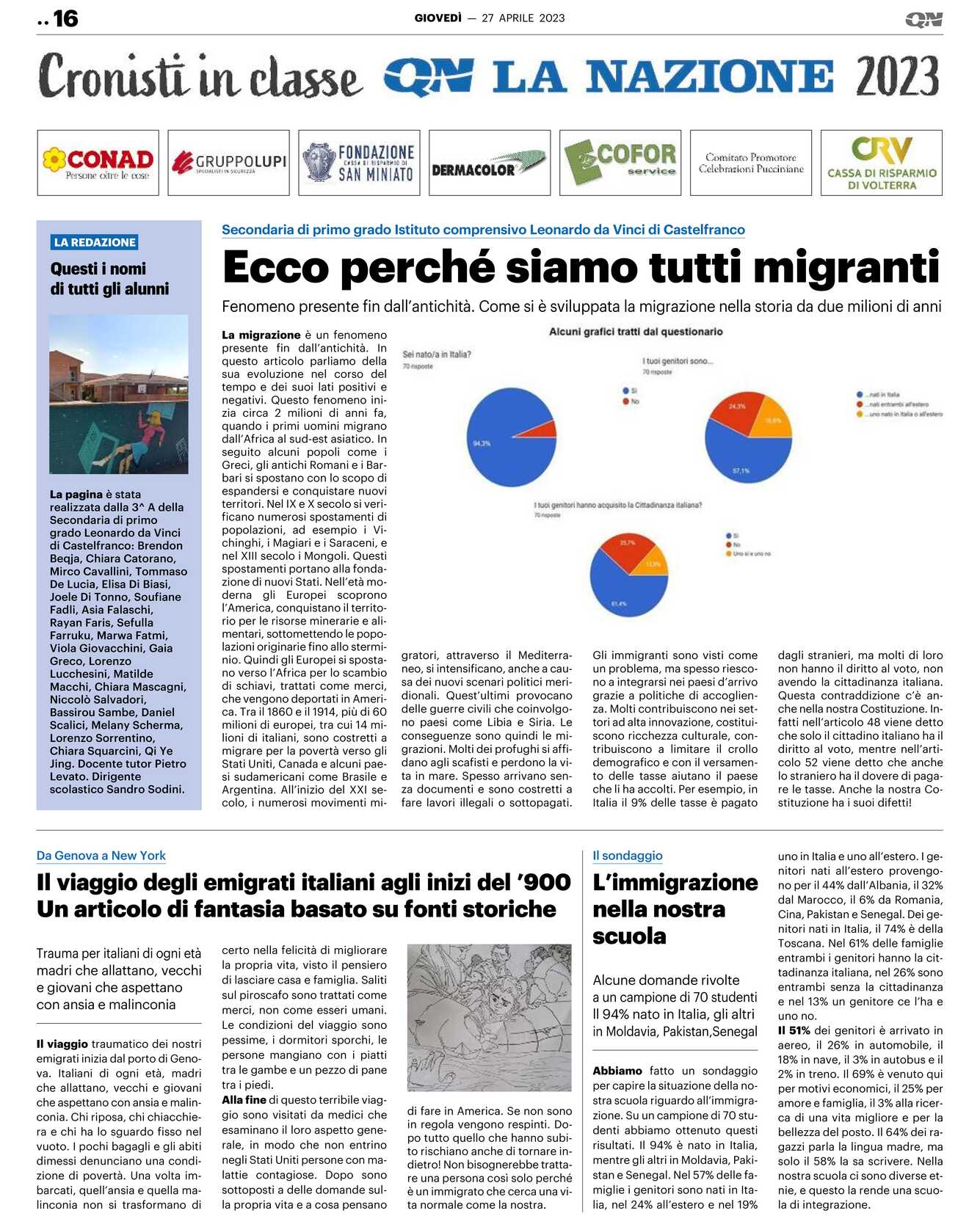 La pagina è stata realizzata dalla 3^ A della Secondaria di primo grado Leonardo da Vinci di Castelfranco: Brendon Beqja, Chiara Catorano, Mirco Cavallini, Tommaso De Lucia, Elisa Di Biasi, Joele Di Tonno, Soufiane Fadli, Asia Falaschi, Rayan Faris, Sefulla Farruku, Marwa Fatmi, Viola Giovacchini, Gaia Greco, Lorenzo Lucchesini, Matilde Macchi, Chiara Mascagni, Niccolò Salvadori, Bassirou Sambe, Daniel Scalici, Melany Scherma, Lorenzo Sorrentino, Chiara Squarcini, Qi Ye Jing. Docente tutor Pietro Levato. Dirigente scolastico Sandro Sodini.