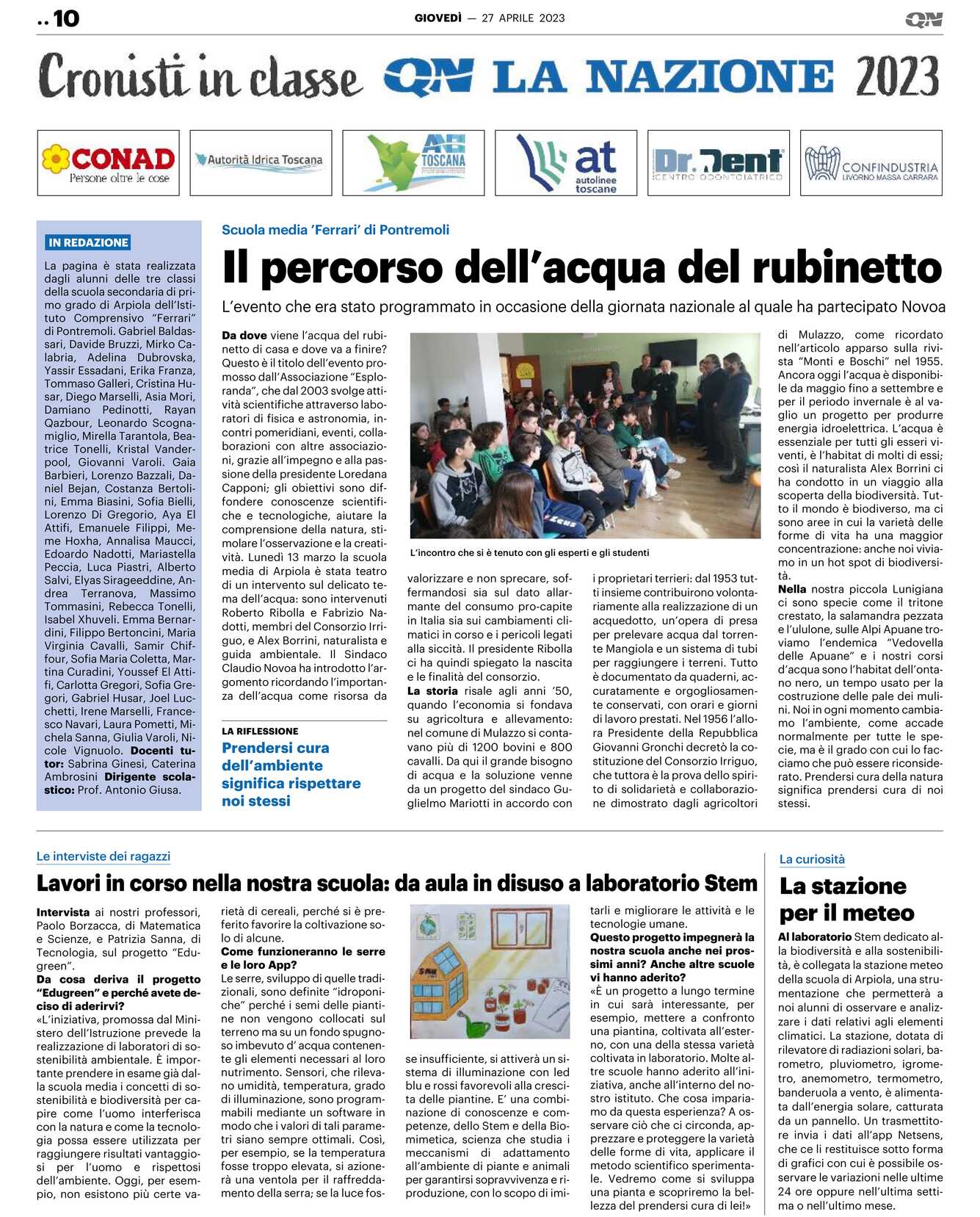 Da dove viene l’acqua del rubinetto di casa e dove va a finire? Questo è il titolo dell’evento promosso dall’Associazione “Esploranda”, che dal 2003 svolge attività scientifiche attraverso laboratori di fisica e astronomia, incontri pomeridiani, eventi, collaborazioni con altre associazioni, grazie all’impegno e alla passione della presidente Loredana Capponi; gli obiettivi sono diffondere conoscenze scientifiche e tecnologiche, aiutare la comprensione della natura, stimolare l’osservazione e la creatività. Lunedì 13 marzo la scuola media di Arpiola è stata teatro di un intervento sul delicato tema dell’acqua: sono intervenuti Roberto Ribolla e Fabrizio Nadotti, membri del Consorzio Irriguo, e Alex Borrini, naturalista e guida ambientale. Il Sindaco Claudio Novoa ha introdotto l’argomento ricordando l’importanza dell’acqua come risorsa da valorizzare e non sprecare, soffermandosi sia sul dato allarmante del consumo pro-capite in Italia sia sui cambiamenti climatici in corso e i pericoli legati alla siccità. Il presidente Ribolla ci ha quindi spiegato la nascita e le finalità del consorzio.