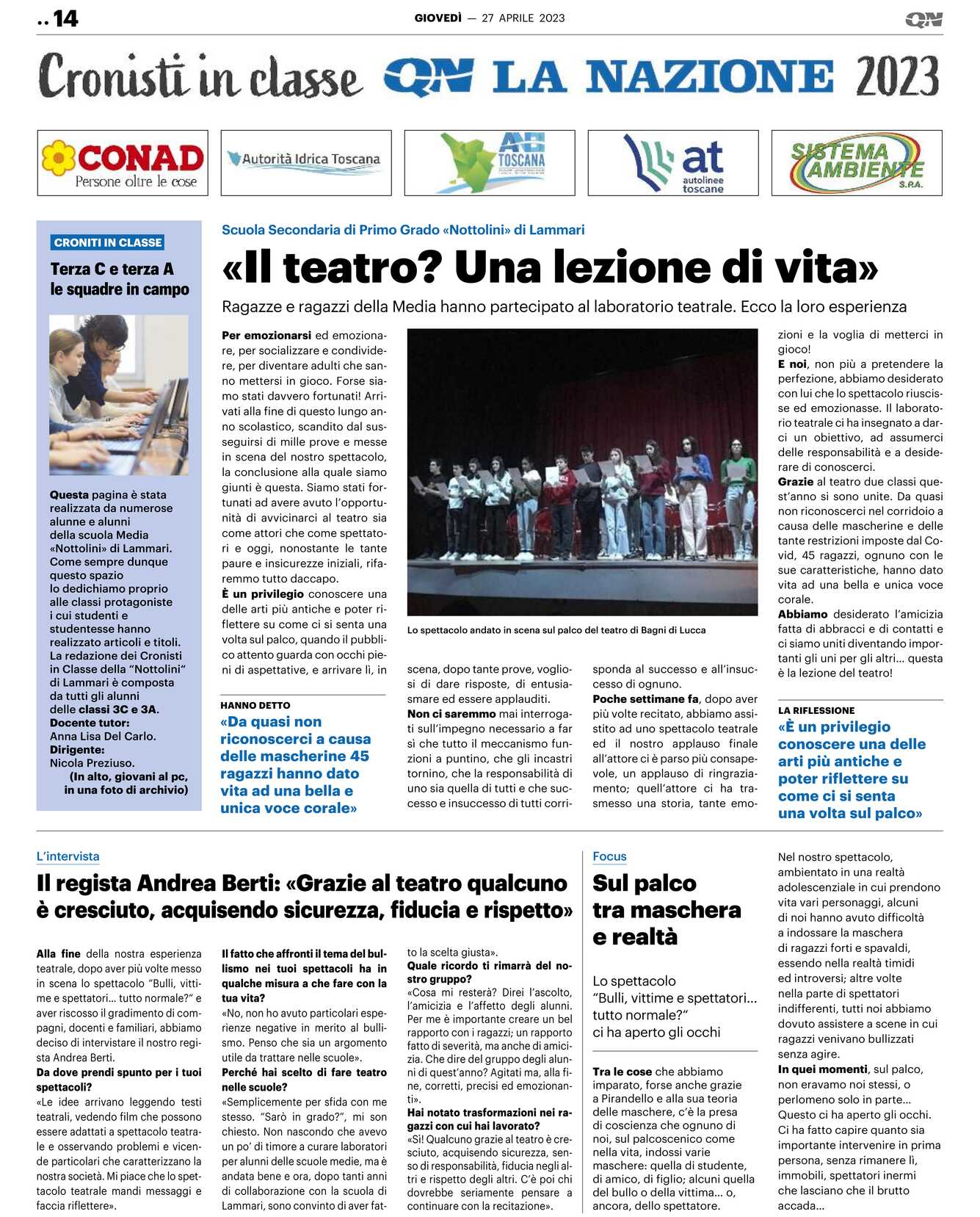 Alla fine della nostra esperienza teatrale, dopo aver più volte messo in scena lo spettacolo “Bulli, vittime e spettatori… tutto normale?“ e aver riscosso il gradimento di compagni, docenti e familiari, abbiamo deciso di intervistare il nostro regista Andrea Berti.