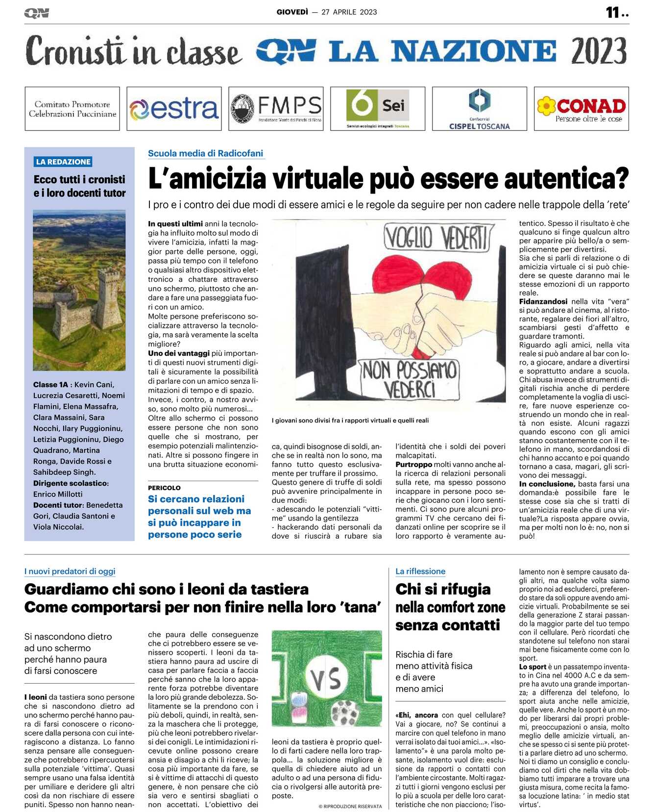 Classe 1A : Kevin Cani, Lucrezia Cesaretti, Noemi Flamini, Elena Massafra, Clara Massaini, Sara Nocchi, Ilary Puggioninu, Letizia Puggioninu, Diego Quadrano, Martina Ronga, Davide Rossi e Sahibdeep Singh.