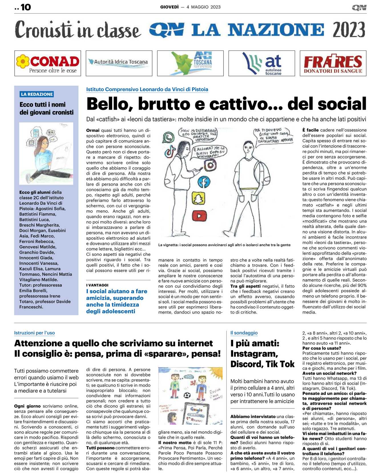 Ecco gli alunni della classe 2C dell’istituto Leonardo Da Vinci di Pistoia: Agostini Sofia, Battistini Fiamma, Battistini Luca, Breschi Margherita, Doci Morgan, Eusebini Asia, Fedi Marco, Ferroni Rebecca, Genovesi Matilde, Granchio Davide, Innocenti Giada, Innocenti Vanessa, Kaculi Elisa, Lamura Tommaso, Nencini Mattia Vitagliano Matilde.