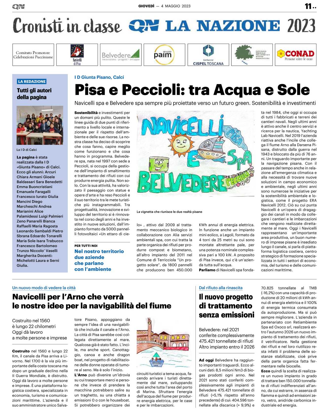 Sostenibilità e investimenti per un domani più pulito. Queste le linee guida di due punti di riferimento a livello locale e internazionale per il rispetto dell’ambiente e delle sue risorse. La nostra classe ha deciso di scoprire che cosa fanno, capire meglio come funzionano e che cosa hanno in programma. Belvedere spa, nata nel 1997 con sede a Peccioli, si occupa della gestione dell’impianto di smaltimento e trattamento dei rifiuti con cui produrre energia pulita. Non solo. Con la sua attività, ha valorizzato il paesaggio con statue e opere d’arte e ha reso Peccioli e il suo territorio tra le mete turistiche più instagrammabili. Tra progettualità, innovazione e sviluppo del territorio si è rinnovata nel corso degli anni e ha investito in nuove soluzioni, dall’impianto formato da 5000 pannelli fotovoltaici «Un ettaro di cielo» , attivo dal 2009 al trattamento meccanico biologico in collaborazione con Alia servizi ambientali spa, con cui tratta la parte organica dei rifiuti per produrre compost e biometano, all’altro impianto del 2011 nel Comune di Terricciola “Un progetto solare”, da 1800 pannelli che producono ben 450.000KWh annui di energia elettrica.