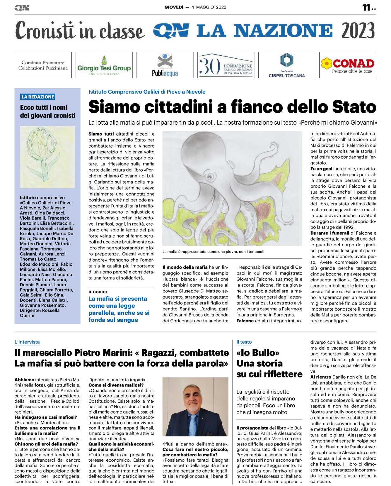 Istituto comprensivo «Galileo Galilei» di Pieve A Nievole, 2a: Alessio Aresti, Olga Baldacci, Viola Barelli, Francesco Bartolini, Elisa Bettaccini, Pasquale Bonelli, Isabella Brruku, Jacopo Marco De Rosa, Gabriele Delfino, Matteo Donnini, Vittoria Fasciana, Tommaso Galgani, Aurora Lenzi, Thomas Lo Casto, Edoardo Maccioni, Fabio Milione, Elisa Morello, Leonardo Nesi, Giacomo Pacini, Matteo Paponi, Dennis Plumari, Laura Poggiali, Chiara Porretta, Gaia Selmi, Elio Sina.